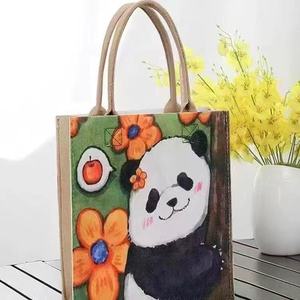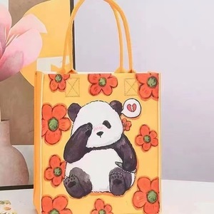 Guochao ポストパンダフラワーフェルトバッグハンドバッグトートバッグ通勤レディースバッグショルダーハンドバッグギフトバッグ