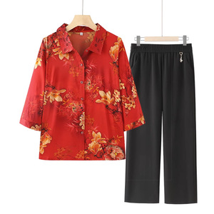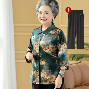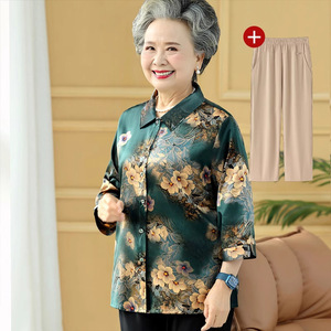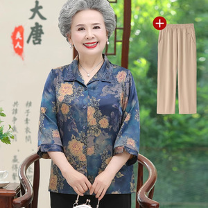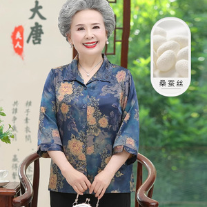 中高年女性向けマザーズシルクトップス、桑絹シャツ、おばあちゃんの夏服、杭州シルク、高齢女性向け新スタイル