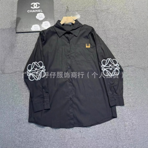 25春夏新作レイジースタイル万能刺繍ロゴミドル丈ゆったり長袖シャツ女性用