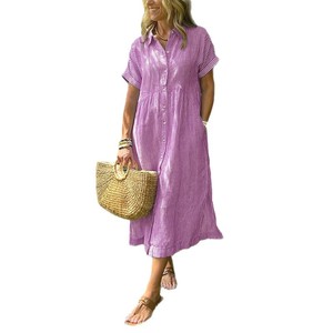 ヨーロッパとアメリカのクロスボーダールーズ大きいサイズストライプ半袖シャツドレス女性の夏の新しいカジュアルコットンとリネンのミドル丈スカート