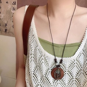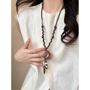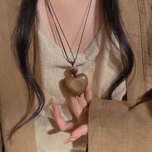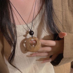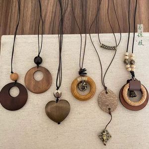 新しい中国風のレトロなエスニックスタイルのラブネックレスセーターチェーン新しい秋と冬の木製のエレガントなラウンドペンダントネックレス