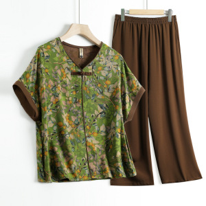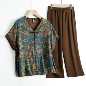 中高年向け夏シャツ、おばあちゃん夏シャツ、女性半袖おばさん服スーツ、新作Tシャツ、シャツ