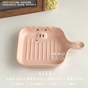 見栄えの良い朝食プレート、高級野菜プレート、セラミックハンドルプレート、韓国風ベーキングトレイ、オーブンディナープレート、かわいい焼き飯プレート