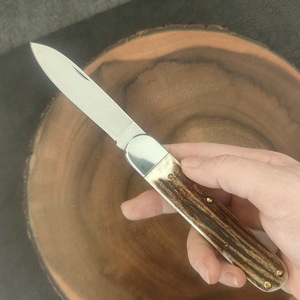 跨境现货典藏德国鹿角柄耐用厚实锋利家居户外露营折叠水果刀餐刀
