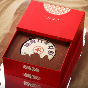 遇见好茶普洱茶饼礼盒红色+茶刀+手提袋;空盒