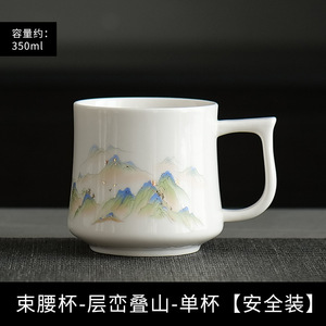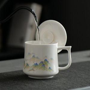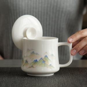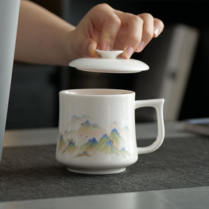 羊脂翡翠セラミックティーカップオフィス個人マグ蓋付き白磁カップ家庭用ウォーターカップお土産