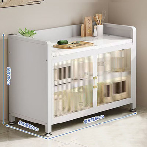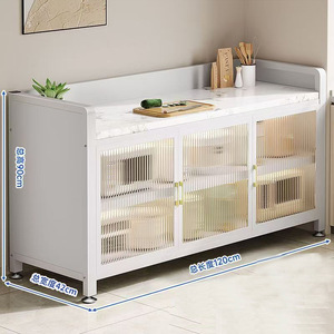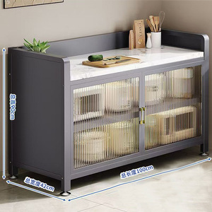 厨房置物架岩板多开柜门落地碗碟烤箱收纳柜多用途多层切菜餐边柜