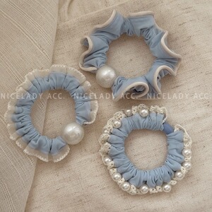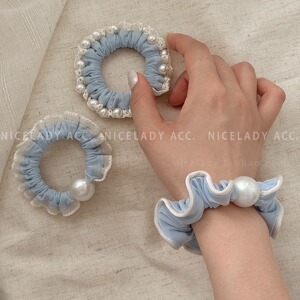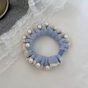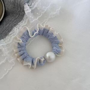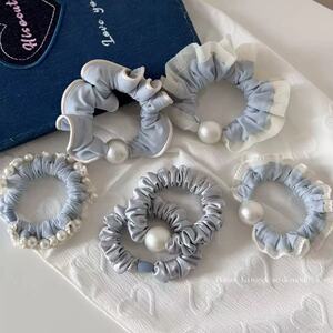 新しい海塩ブルーレースの柔らかく快適なマスクアイスシルク小さな腸ヘアリングファッショナブルでシンプルなパールヘアアクセサリー
