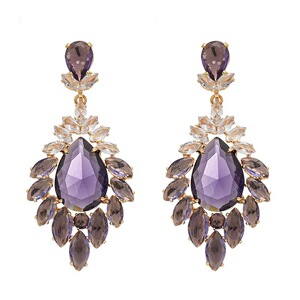 レトロなライトラグジュアリーハイエンドフラッシュフルダイヤモンドタッセルイヤリング、誇張されたイヤリング、魅力的なパープルダイヤモンドの雰囲気のあるイヤリング、女性用
