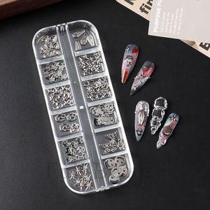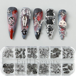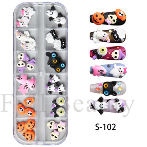 跨境新款美甲饰品12格盒装合金万圣节南瓜幽灵色彩树脂指甲饰品
