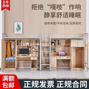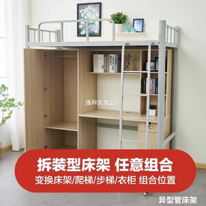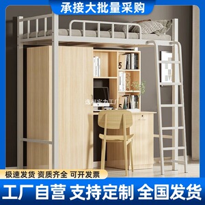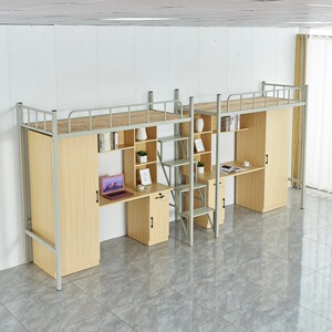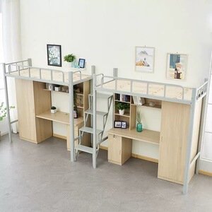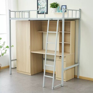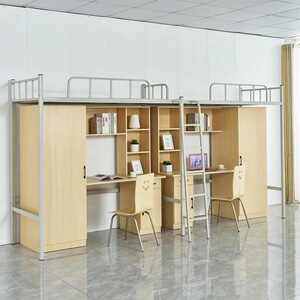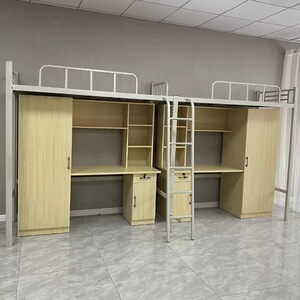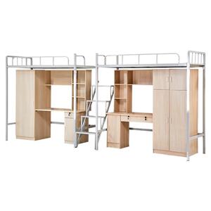 二段ベッドとテーブル一体型コンビネーションベッド、学生用二段ベッド、キャビネット、ロフトベッド、角パイプ、寮用アイアンベッド、ダブルエコノミータイプ