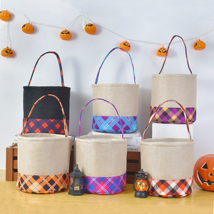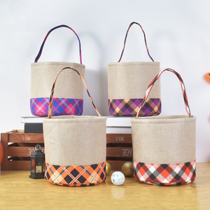 クロスボーダーハロウィンイミテーションリネングリッド収納バスケット面白いショッピングモールパラダイス屋内屋外装飾小道具と装飾品