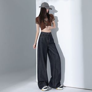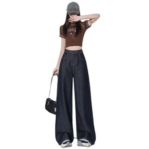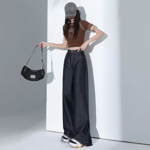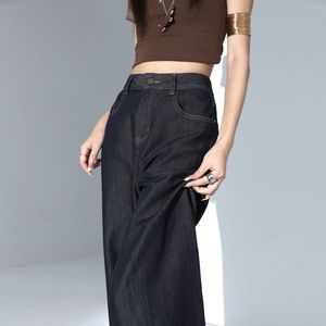 女性のためのハイウエストジーンズ夏 2025 新しいアメリカンレトロダークブルーワイドレッグパンツデザインスリムフロアモップパンツ