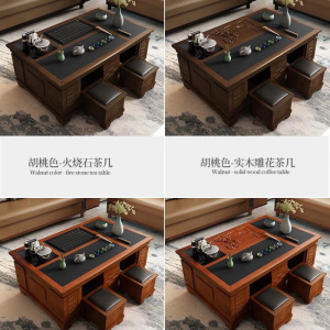 功夫茶桌椅带烧水壶火烧石茶几茶具套装一体客厅家用办公室泡茶台