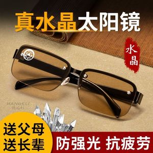 本物の天然水晶ストーンサングラスメガネメンズラージフレーム遮光目ドライバー運転サングラス目の保護