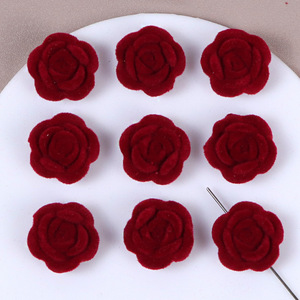 ファッショナブルで多用途な植毛バーガンディローズカメリア穴あきDIY手作りジュエリーアクセサリー材料卸売