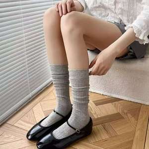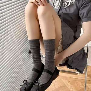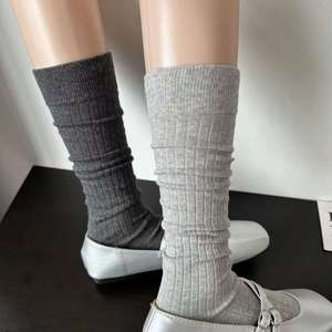 miu パイルグレーふくらはぎソックス レディース 春夏 薄手 縦縞 キャットウォークスタイル 無地 ミッドカーフソックス 万能ハイソックス