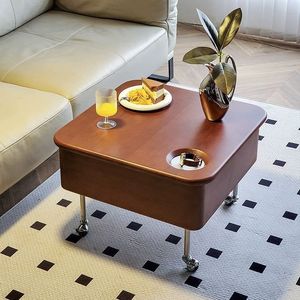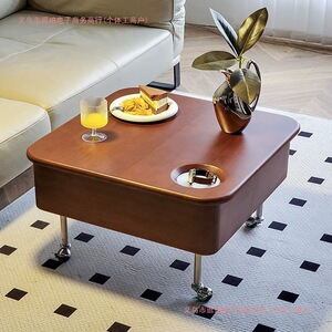 中世スタイルの無垢材リフティングコーヒーテーブルレトロモダンな小さなアパートホームモバイル折りたたみ多機能収納リビングルームと寝室