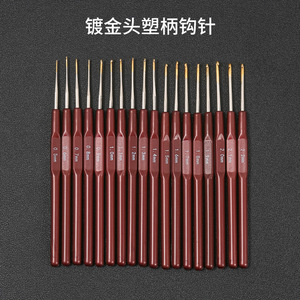 金メッキのヘッドとプラスチックハンドルのかぎ針編みフック