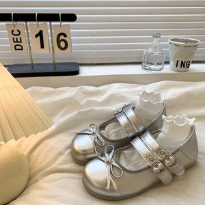 シルバーレトロフレンチラウンドトゥ浅い口フラットシューズ女性のための 2025 新しい夏ソフトソールバレエスタイルメリージェーンシューズ
