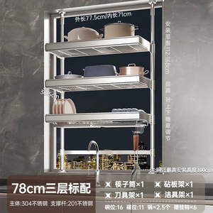 【304ステンレス】3段 幅78cm フル装備(設置範囲112~168cm)