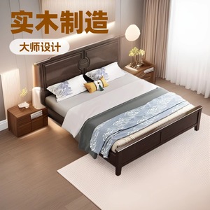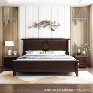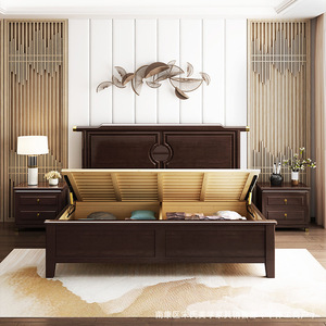工場直販の新しい中国風オーク無垢材ベッド、小中型寝室ダブルベッド、高さ1.8Mのボックス収納機能付き