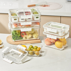 冰箱整理盒密封收纳盒冰柜分隔盒厨房保鲜盒分格沥水篮食物收纳盒