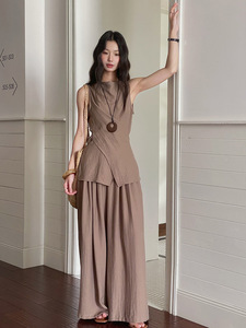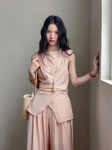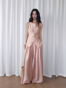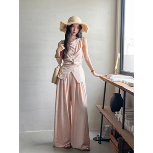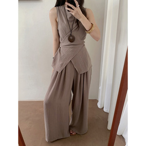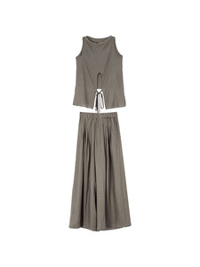 【クールガーリー】Geming フレンチスリットノースリーブベスト レディース+リネンワイドパンツ 2点セット N290C