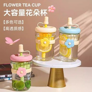 女の子向けの見栄えの良いウォーターカップ、ポータブルでシンプルな茶水分離カップ、ストローガラスカップ、ティーカップ、水出しフラワーティーカップ