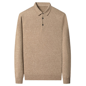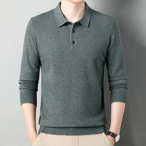 新しいクロスボーダー秋冬ウールラペル長袖メンズニットポロシャツ無地中年ボトムセーターメンズ
