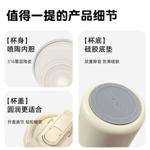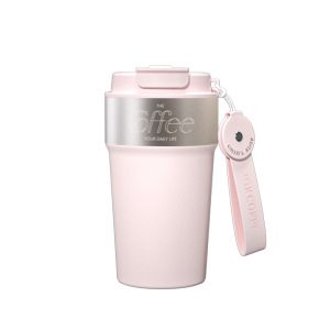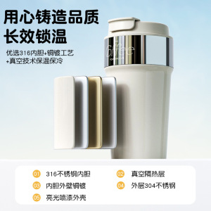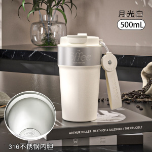 ポータブル二重飲み口コーヒーカップ、ビジネス用ロープ付き二重飲み口カップ、316ステンレス鋼内側スプレーコーティング断熱真空軽量カップ