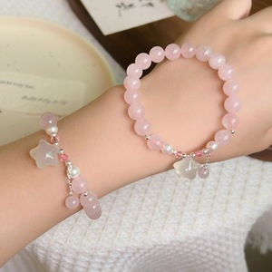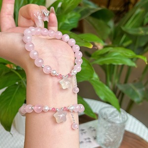 オリジナルデザインの天然水晶小さな新鮮なブレスレット絶妙なピンククリスタル桃の花かわいいスターブレスレットギフト