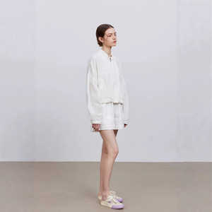 東大門シンプルリネンスーツ Jshop 夏新作カジュアル無地ジッパーラペルシングルポケット長袖ジャケット