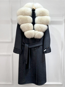 2025 東大門新断層ビッグファーカラー両面カシミヤコートレディースロングウールウールターンスリーブコートトレンディ