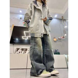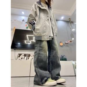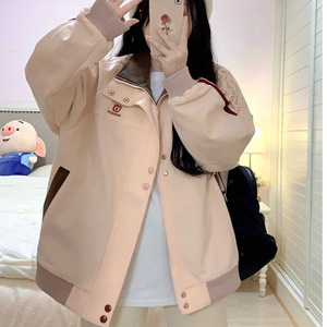 国民的トレンドアメリカンレトロ3ストライプスコントラストカラージャケット女性用2025春秋ルーズカジュアル万能ジャケット野球ユニフォーム