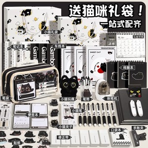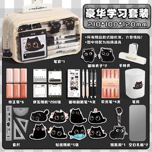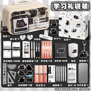 【猫学習ギフトバッグ - コンプリートセット】13層ペンケース/ギフトバッグ+ルーズリーフブック+クエスチョンペン+修正テープ+蛍光ペン+定規セット+リフィル+ペンホルダー+便利