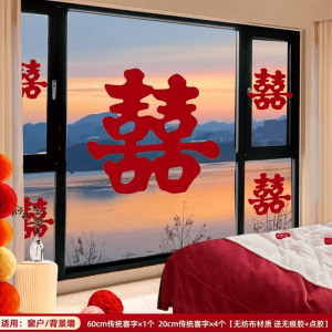 【60cm圆喜+20cm4张】适用窗户背景墙