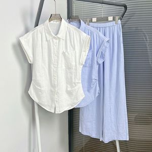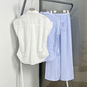 HOUSE25 Xia Xin ノースリーブレインデューリネンプリーツシャツとパンツカジュアルスーツオールドマネースタイルツーピースセット