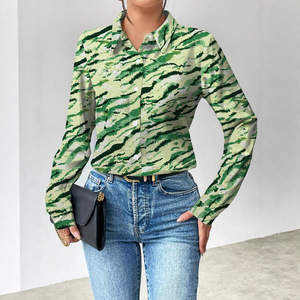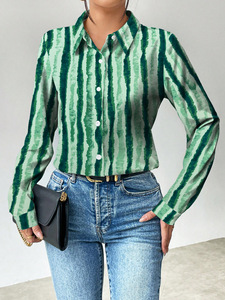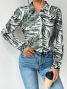 ヨーロッパとアメリカンスタイルの2025年の新しい女性用シャツ、マルチカラーストライプゼブラプリントラペル長袖シングルブレストファッショナブル