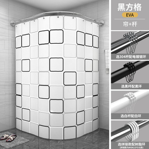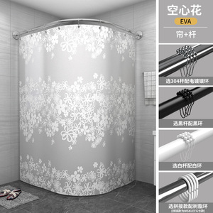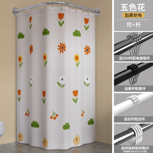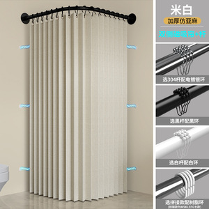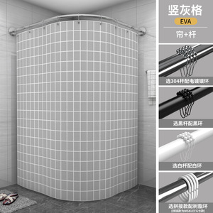弧形折叠磁吸浴帘套装L形淋浴房卫生间隔断帘加厚防水浴室帘现货