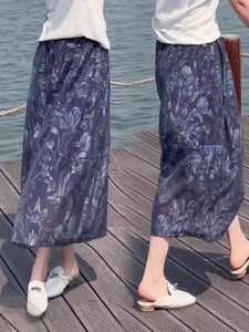 工場直販テンセルリネンプリントスカートレディース夏薄手25新作花柄ラミースーパーハンサムバドスカート