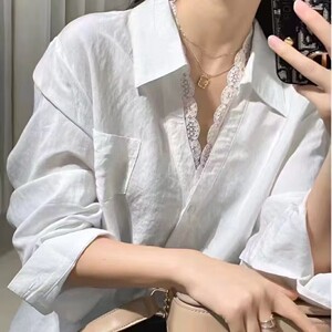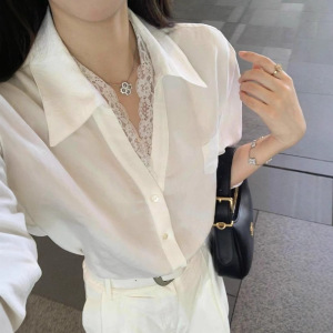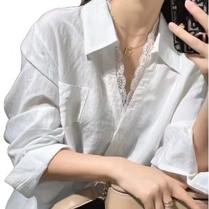 2025 春夏新作シャツレディース長袖レースステッチデザイン気質シンプル通勤万能着痩せトップ