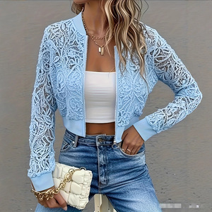 女性の白い気質レースステッチジッパージャケット通勤カジュアルスタイルショートファッショントップ