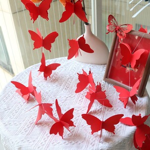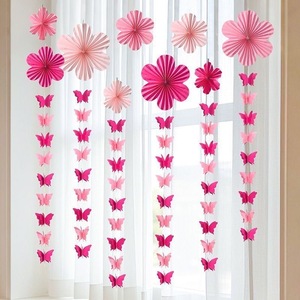 跨镜新款花朵折纸扇搭配立体蝴蝶纸片串挂饰婚礼用情人节布置装饰