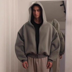 ヨーロッパとアメリカの2025秋冬ヘビーウェイトソリッドカラーカジュアルデザインルーズニッチジッパーフード付きスウェットシャツ卸売