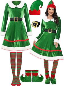 2025 クロスボーダー新女性のクリスマスエルフスーツベルベットドレスストライプコスプレステージパフォーマンス