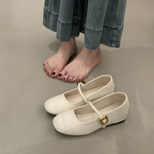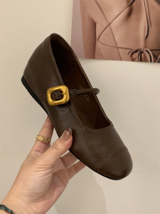 女性用小柄身長アップメリージェーンシューズ、スクエアトゥワンストラップフラットシューズ、レトロソフトソールパンプス