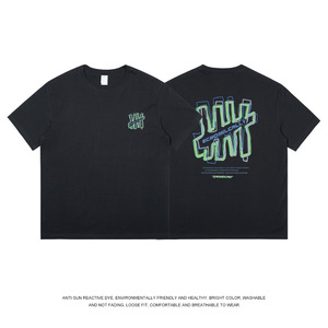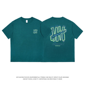 夏の韓国風シックなゆったりとした純綿半袖Tシャツ、メンズ個性プリントトップス、ニッチなインナー、レディースインスタトレンドブランド