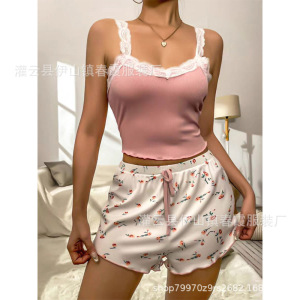 国境を越えたヨーロッパとアメリカの夏の国境を越えたホーム服レースサスペンダーショーツスーツ快適なホームカジュアルウェアラブルパジャマ女性用