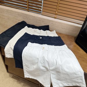 オールドマネースタイル ホワイト コットンとリネン ウエストゴム 5点ショーツ メンズ 夏 薄手 ビジネス 通勤 カジュアルパンツ